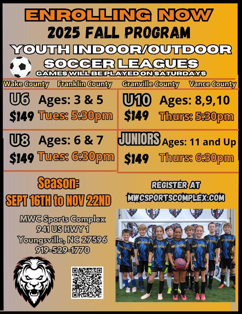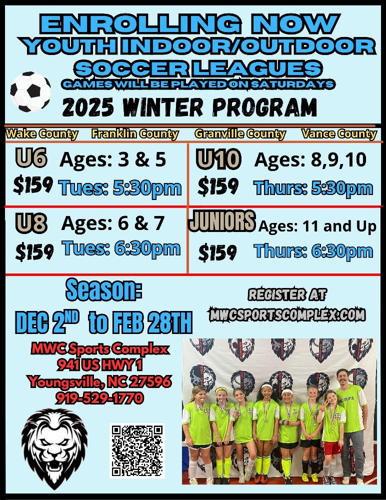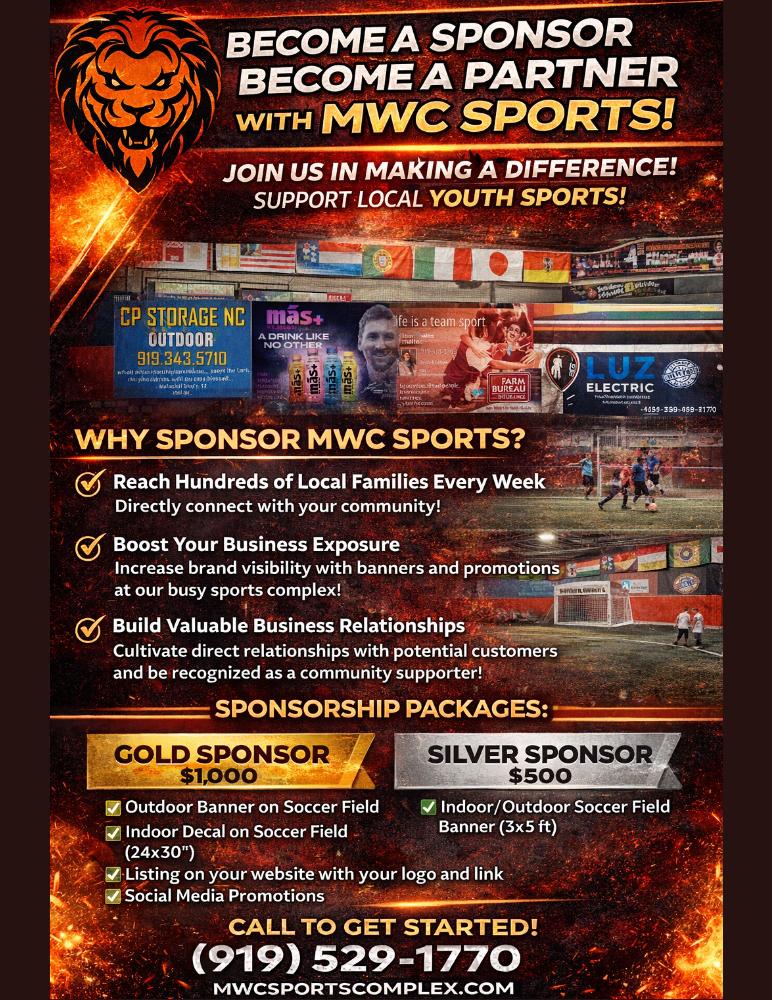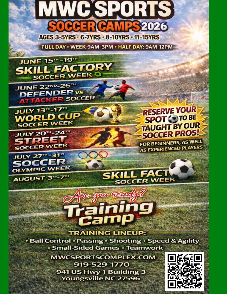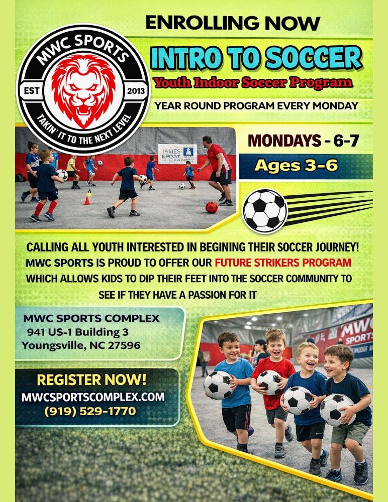 At MWC Sports, our mission is to foster a lifelong passion for athleticism and sportsmanship in individuals of all ages. We are committed to providing top-tier training and development opportunities in a variety of sports, including soccer, wrestling, baseball, and more. Our focus extends beyond mere skill development; we aim to cultivate teamwork, respect, and resilience in a supportive and inclusive environment. Serving the communities of Youngsville and Wake Forest, we strive to be a beacon for health, fitness, and community engagement. Our dedicated team of experienced coaches and staff are devoted to unlocking each athlete's full potential, ensuring that every participant can thrive both on and off the field. At MWC Sports, we don't just build athletes; we build leaders and community champions.